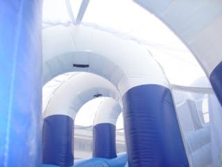 This inflatable snow mountain slide is made for adults and children. It is perfect for simulating a slide down a snow covered mountain when winter conditions are not available. This is a massive attraction and riders board a snow tube for the ride to the bottom of the slide. It is a high throughput piece and is the only one in the United States. It has tremendous WOW factor and for many sliders, it is the only time they will ever have a chance to experience a snow tube. You simply climb up the stairs, sit in your inflatable snow tube and down you come spinning and twisting. Also as you are sliding down you see a stream of colorful light of magic as you are racing down the snow slide just to land into a pile of snow. This slide can be use during the summer as a fun wet waterslide just as well... instead of a pile of snow you splash down into pool of water! This Mountain is 3 story's tall making it one of the tallest slides in America. Age 5 and up!!!