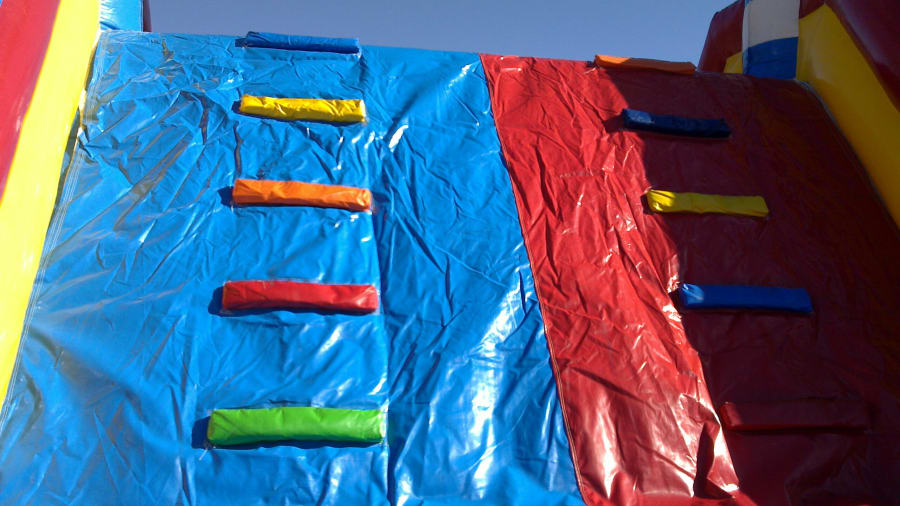 A giant fun obstacle course with beautiful and colorful stripes that remind you of candy. Watch your kids run thru the tunnel, oh watch out! Don't hit the long pop-up candy sticks.... Climb up the 17ft wall to slide down and race then to race to the front and start over again and again.... 5 years and up!